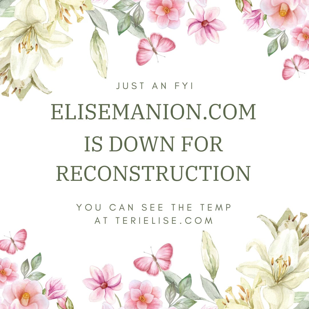 I should have www.elisemanion.com up and running in about a week or so. It will look exactly the same as the temp but the address will be correct. I know, I’m a weirdo but such is the life of a writer.